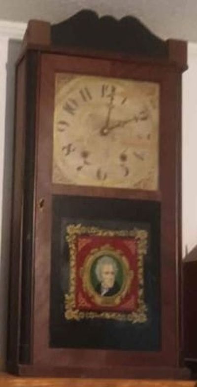 Recently I purchased an old mantel clock from Marketplace. The clock is a little rough, but there was an image of Andrew Jackson on the glass reverse panel, so it became a “must have”.